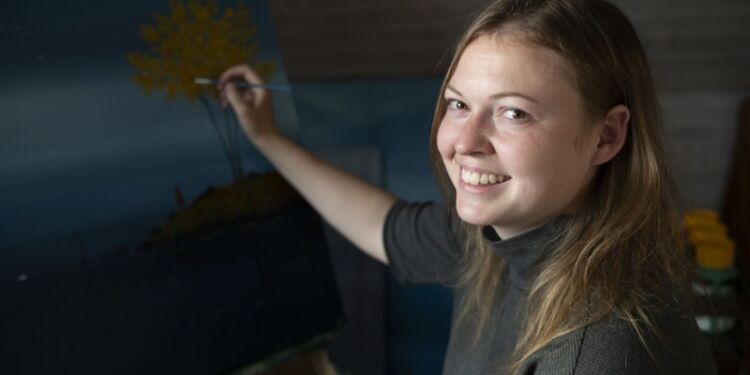 – Jeg var ikke tilfreds med at tegne og besluttede i stedet at prøve akrylfarverne og male på lærred. Akryl passer langt bedre til mit temperament, siger Linnea Friberg Nysted.
