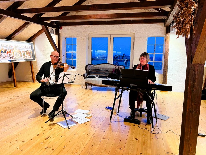 Lækkerierne kunne til overflod nydes til skønne, afdæmpede julemelodier spillet af violinisten Niels Bjerre og organisten Lene Rom.