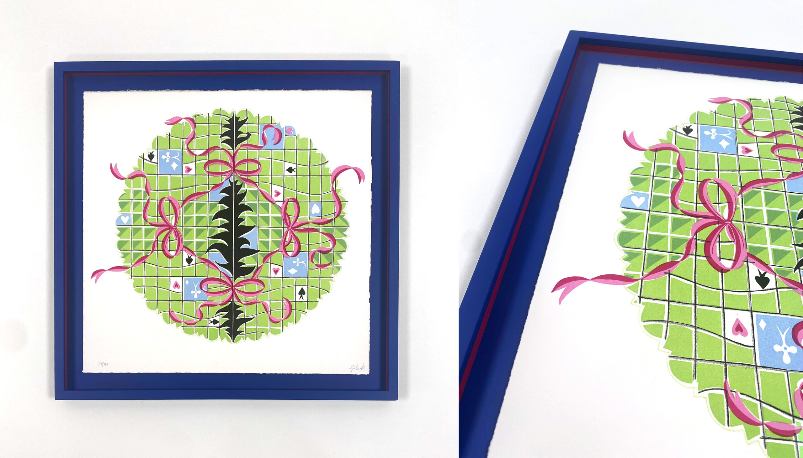 Begge litografier tager udgangspunkt i Sóleys aktuelle udstilling “Queen of Heart” på Gerðarsafn Kópavogur Art Museum på Island. Sóley har designet rammer til de nye litografier, som I kan se nedenfor.