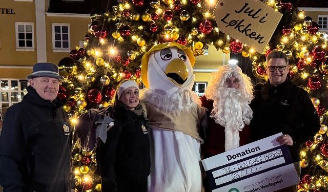 Den officielle tænding af julelysene fandt sted lørdag den 15. november, hvor Jens Sørensen, souschef i Sparekassen Danmarks afdeling i Vrå, overrakte donationen på fondens vegne. Med støtten ønsker fonden at bidrage til et stærkt fællesskab og en bæredygtig udvikling i området.