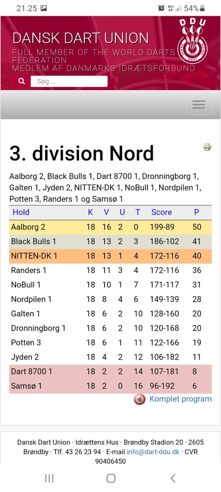 Hjemme i Asdal tog kvalholdene imod Ørnen og Aalborg, så der var fyldt op i lokalet. Men stemningen fejlede ikke noget, og der blev hygget og spillet noget god dart. Nordpilen 2 besejrede først Ørnen med 10-6, samtidig med at Nordpilen 3 delte med Aalborg 8-8.