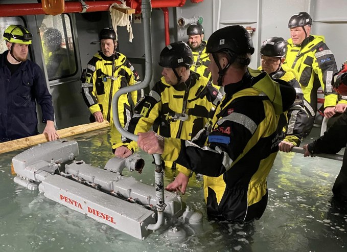 I svømmehallen kan man lave både bølger, vind og regn, så forholdene bliver så tæt på virkeligheden som muligt. I svømmehallen skulle deltagerne på kurset blandt andet bjerge en person under en kæntret båd, klatre op af en høj lodslejder og hoppe i vandet fra tre meters højde.