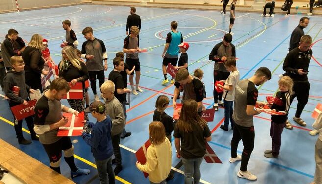 Senere på dagen besøgte en gruppe elever fra Lundergårdskolen landsholdets træning og fik autografer fra alle spillerne.