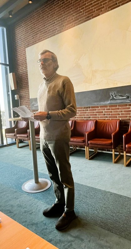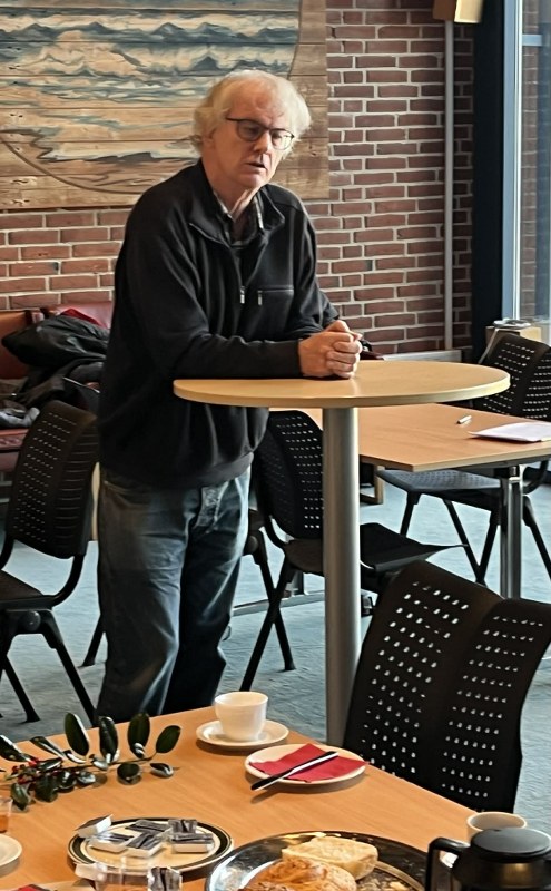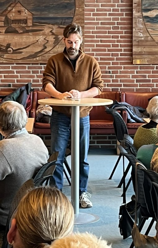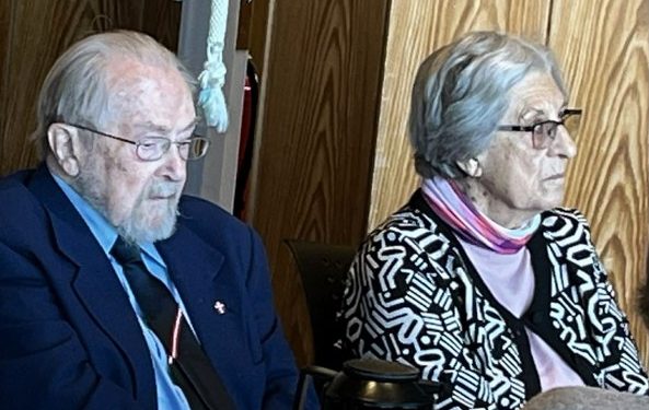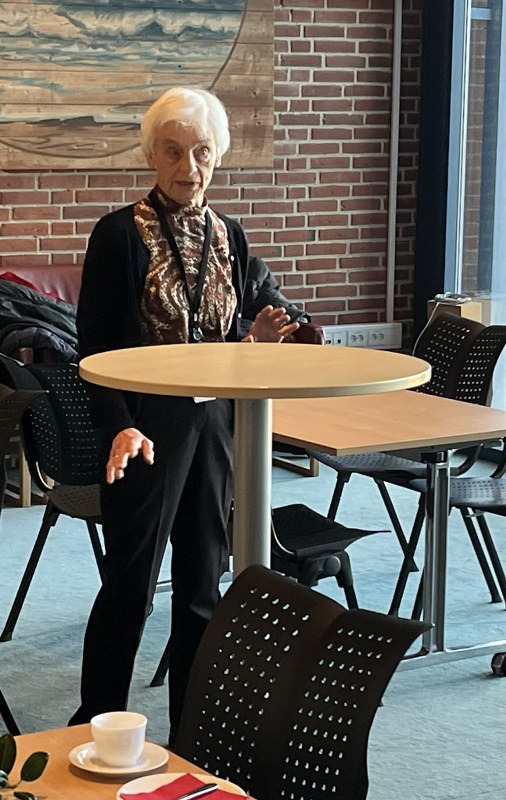 Knud Christensen har netop i 2025 rundet de 100 år, men deltog selv ved fredagens arrangement, hvor han stående supplerede med en anekdote om en faretruende sejlads med et fiskefartøj i en storm hjem fra England få år efter 2. Verdenskrig.