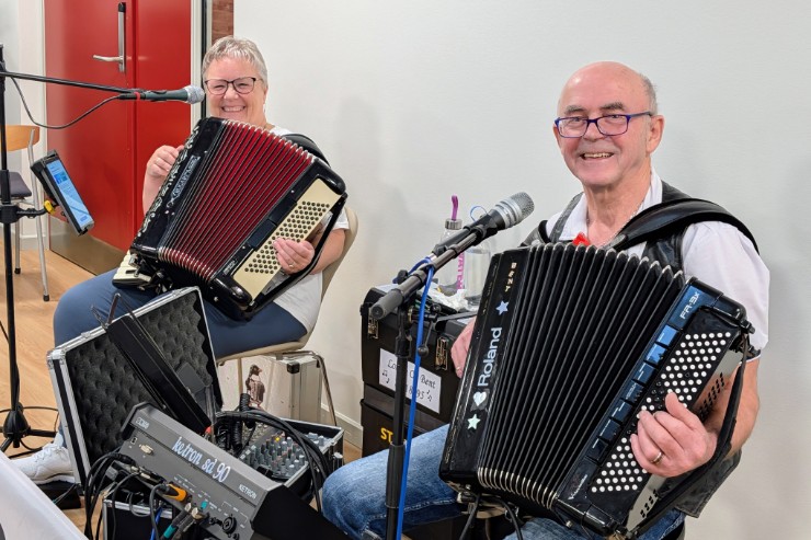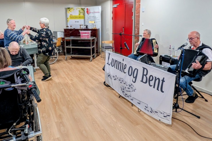 Torsdag bød Soldalhus frivillige fra Dame- og Herreklubben på en festlig eftermiddag fyldt med fællessang og underholdning med den populære duo Lonnie og Bent til stor glæde for beboerne og deres pårørende.