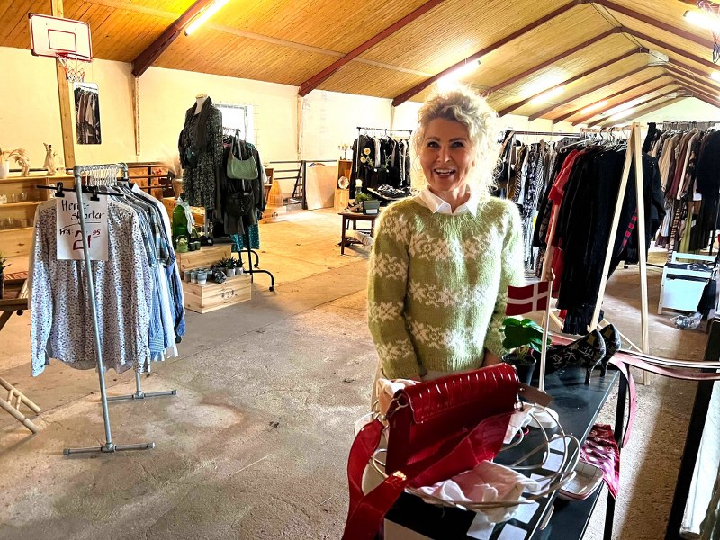 Anita Rasmussen i den store lade med loppemarkedet ved Mosbjerg.