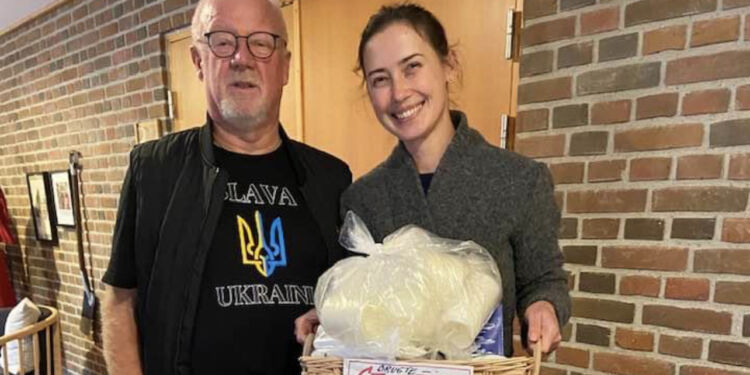 John Sander Christensen har klaret første afhentning af stearinlys fra Bistrupkirken med ildsjæl Tania Popova, som er en ufattelig stor hjælp for alle indsamlinger i Nordjylland.