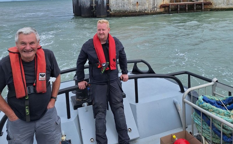 Med redningsvesten på, værktøjskassen under armen og højt humør startede dagen derfor med en sejltur ud til molen.