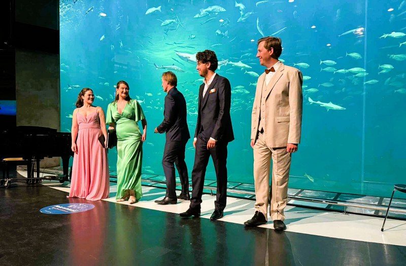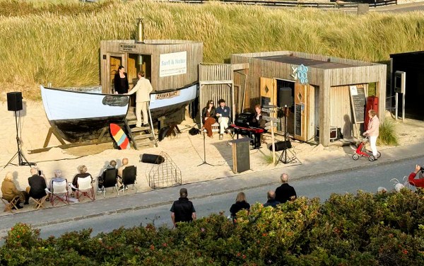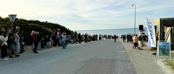 Publikum, der stod i klitterne eller sad i sandet og medbragte stole på fortovet ved Vestmolevej, blev igen draget ind i musikkens drama og følelser af sopran Clara Cecilie Thomsen, mezzosopran Laura Mayer, tenor Jonathan Koppel og basbaryton Henning von Schulman, som sammen med den veloplagte pianist og konferencier Leif Greibe ikke så ud til at have behov for anden scene end lige præcis sandet og Saunakutteren.