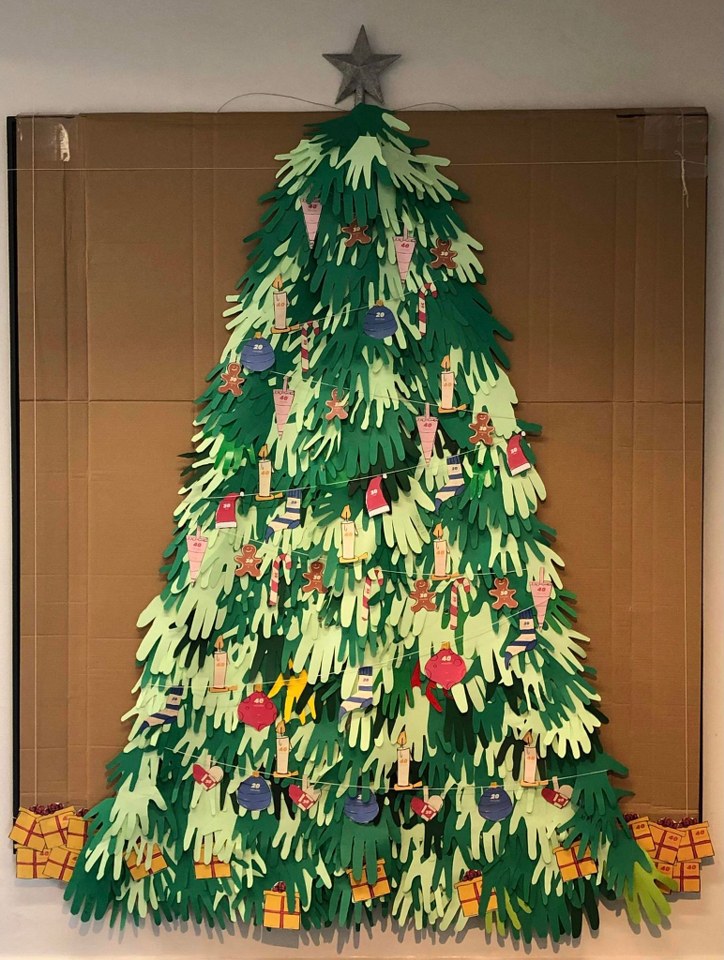 – Ved fælles hjælp blev der skabt et kæmpe stort fællesjuletræ af hænder fra store som små. Desuden duftede der skønt af popcorn og æbleskiver, som vores dygtige elevrådsrepræsentanter hjalp med at ekspedere. Alt i alt en dejlig dag fyldt med glæde, julehygge og masser af samvær, fortæller skoleleder Michelle Vinther.