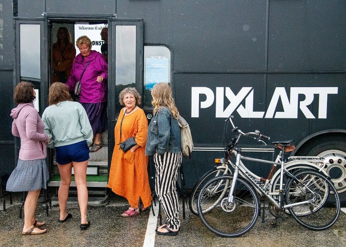 Mens de kreative deltagere løste opgaverne, var Årets Pressefoto i samarbejde med Pressefotografforbundet udstillet på parkeringspladsen i den mobile PixlBOX.