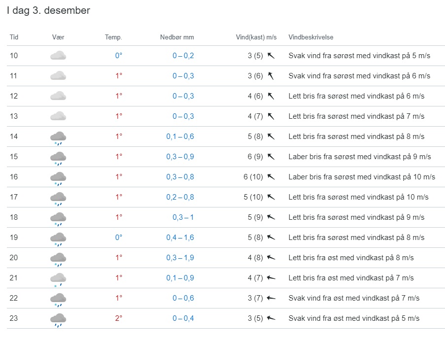 I løbet af morgenstunden og formiddagen vil der være lidt snebyger i luften, men nærmest ingen vind først på dagen. Senere på dagen vil den sydøstlige vind dog tage til flere steder.