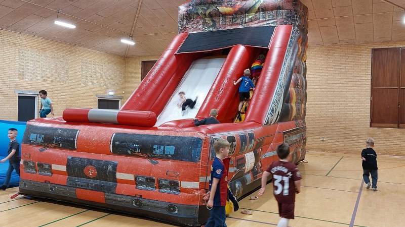 Bagterp-hallernes to sale blev udnyttet til fulde. I den store hal kunne børnene følge MGP-showet live, mens de hyggede sig på madrasser eller dansede lystigt rundt på gulvet. Den anden hal var omdannet til et sandt hoppeborgsparadis. Gorms Telte havde sørge hoppeborge bl.a. en kæmpe Brandbilsrutsjebane, der næsten sprængte hallens rammer og var et hit blandt børnene. Bagterp Gymnastik forening havde yderligere suppleret med oppustelige rekvisitter.