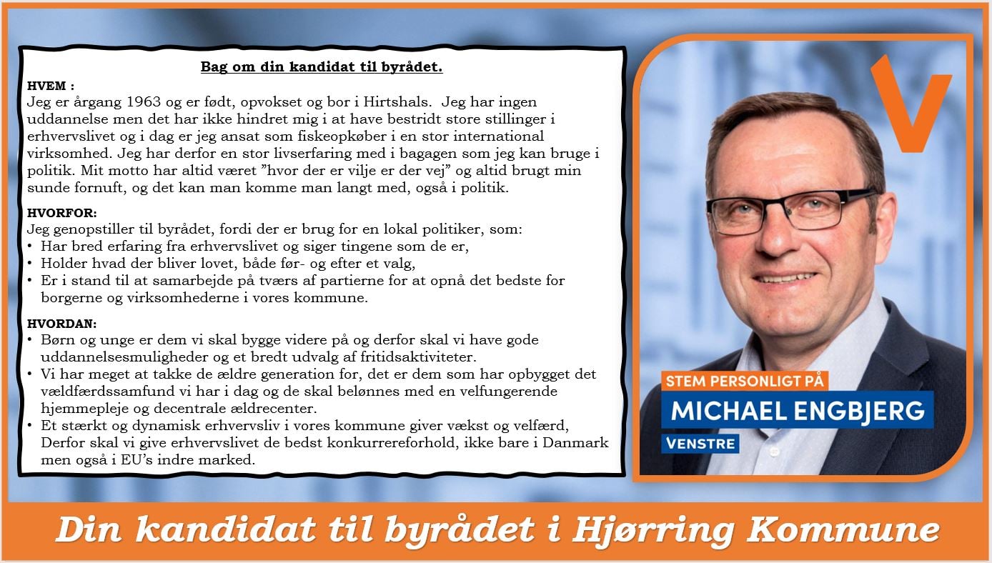 Jeg vil arbejde for alle borgerne i hele Hjørring Kommune og for at få din opbakning til en plads i byrådet er det jo vigtig at jeg giver jer lidt viden om hvem jeg er og hvorfor vil jeg i byrådet.