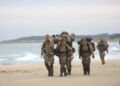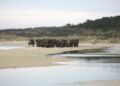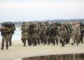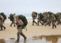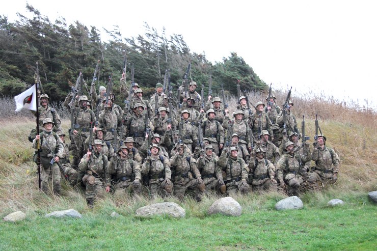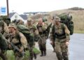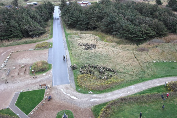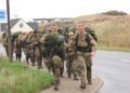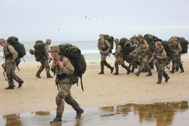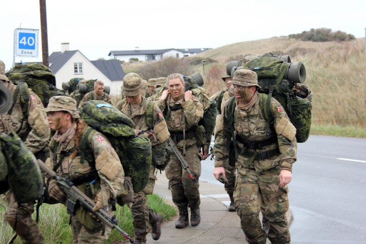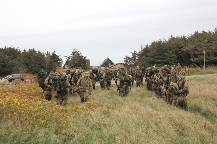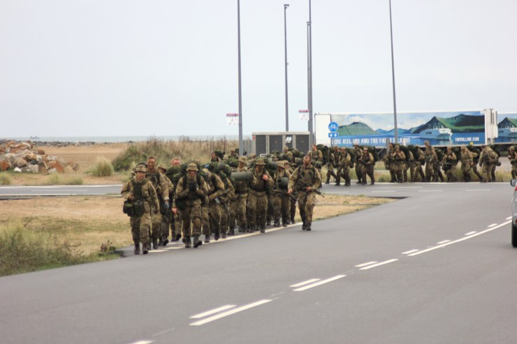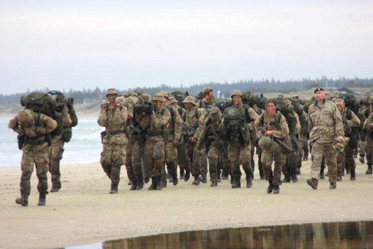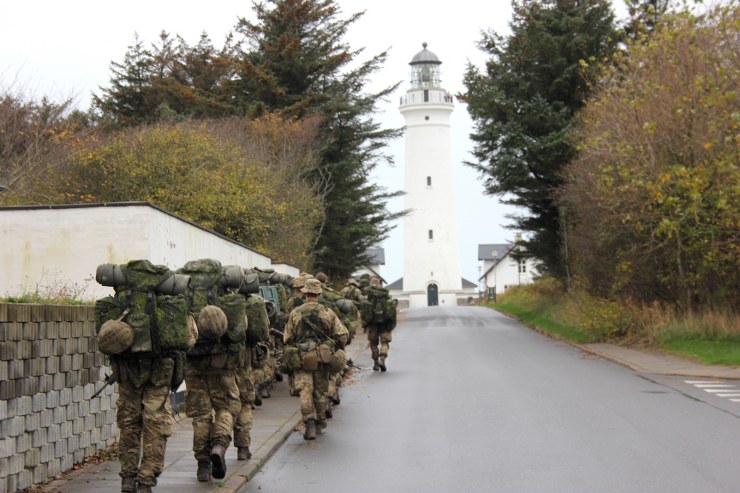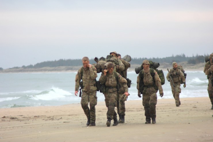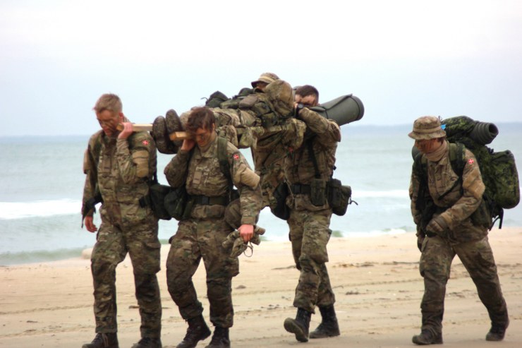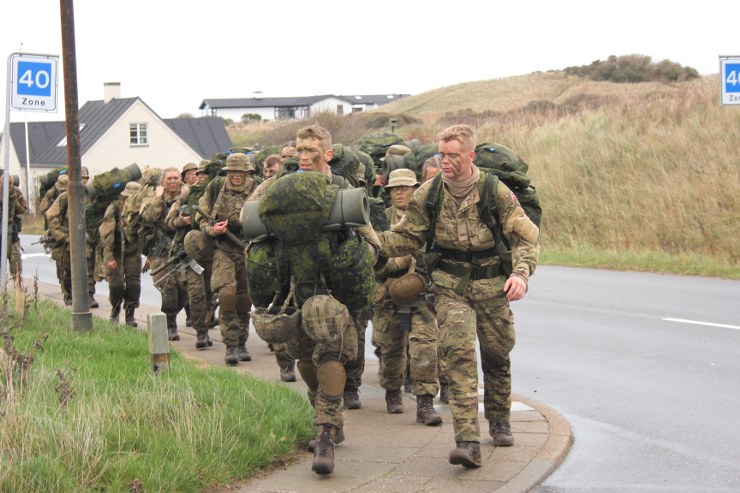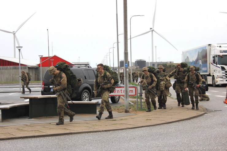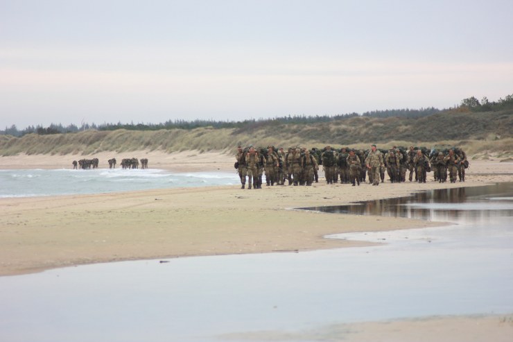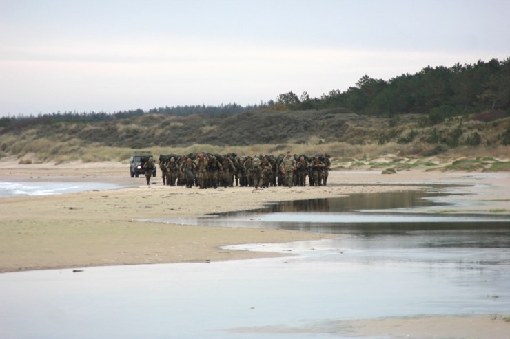 Torsdag formiddag var de værnepligtige så på tur igen. Denne gang skulle de gå fra Uggerby Strand i flok med fuld oppakning og to bårer med tilskadekomne personer.