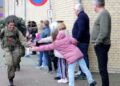 Derefter gik turen igennem Hirtshals by, og som en lille overraskelse havde Hirtshals Skoles små klasser stillet sig på række uden på fortovet for at hilse på de værnepligtige.