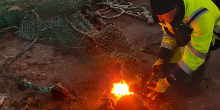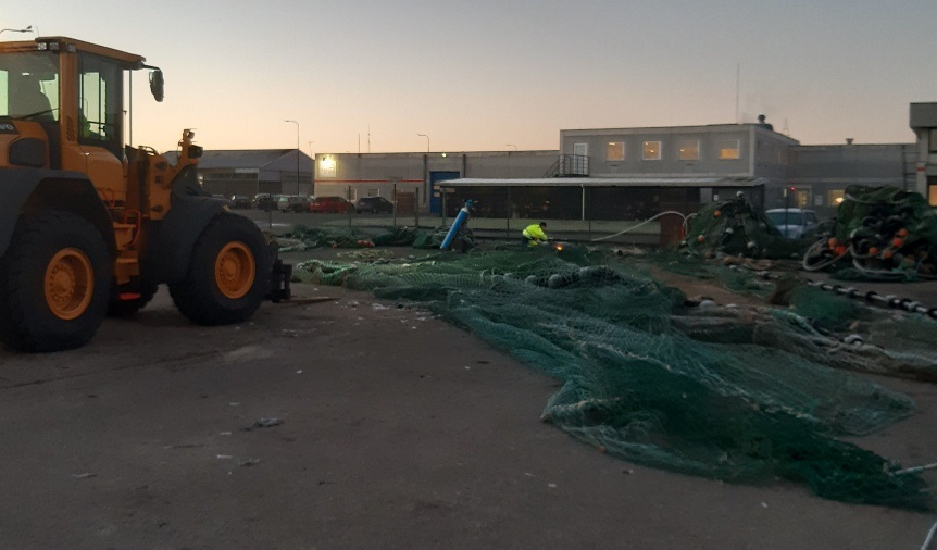 I stedet for blot at smide alle fiskenettene til deponi sørger det tekniske service for at skille nettene ad for at kunne frasortere alle genanvendelige dele på Hirtshals Havn.