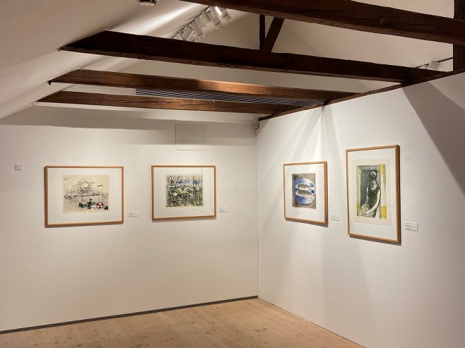 Som perspektivering vises grafiske arbejder af Poul Ekelund i en separat ophængning. Litografierne kender jeg også fra min barndom, hvor min far som ingeniør tegnede og rådgav i forbindelse med en renovering og ombygning af Store Ejstrup. Som betaling modtog min far en stor mappe med litografier.