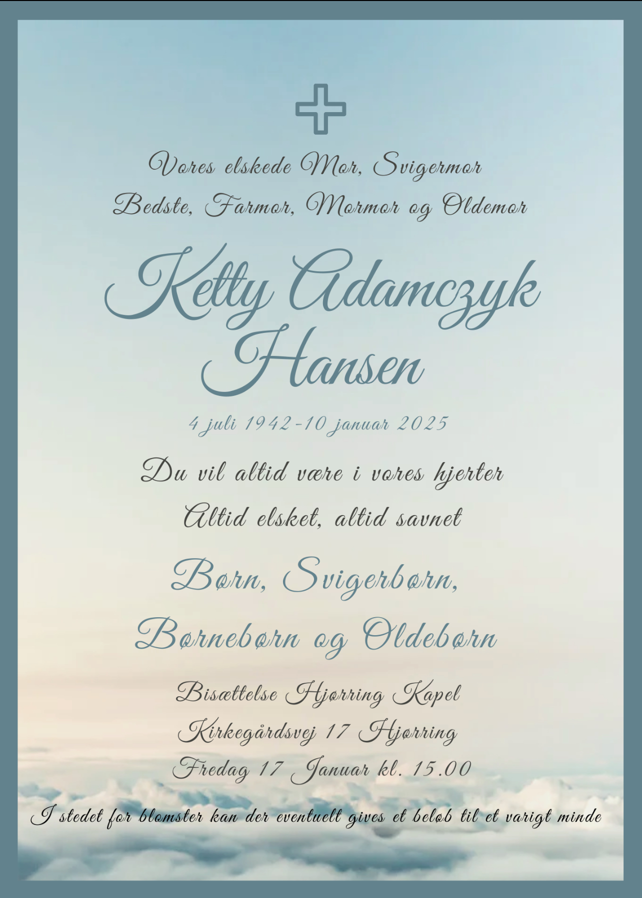 Den 10. januar 2025 sov Ketty stille ind på Fyensgadecentret i Hjørring.