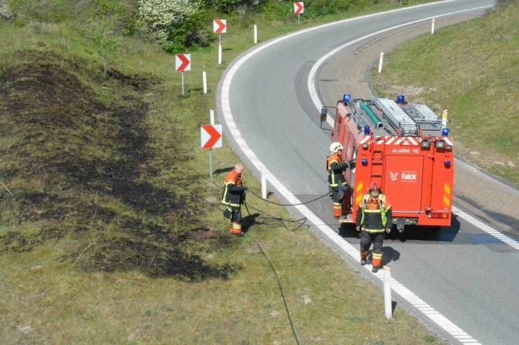 Der opstod fredag eftermiddag en naturbrand på Nordjyske Motorvej ved en af afkørslerne til Hjørring. Den oprindelige melding lød på, at der var to naturbrande, men der var kun en enkelt. Den fik beredskabet hurtigt styr på.