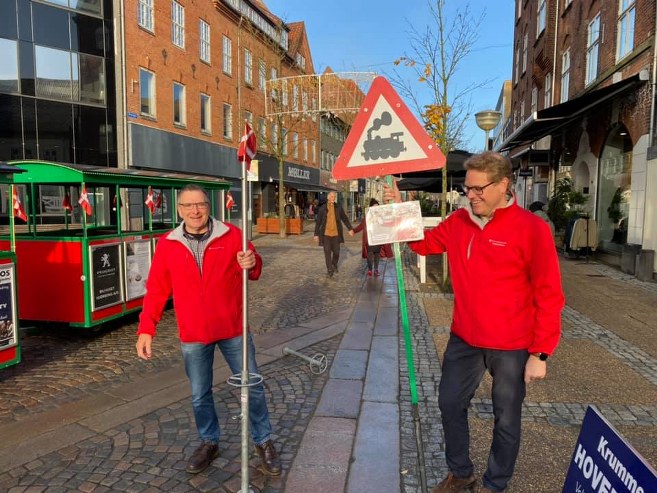 – Min søn Oskar stod for lodtrækningen. Dernæst valgbutik og gågade, hvor den legendariske Krumme kom forbi med sit tog og satte Ole Ørnbøl og Jes Bastholm i sving med at sætte skilte op, fortæller Rasmus Prehn.