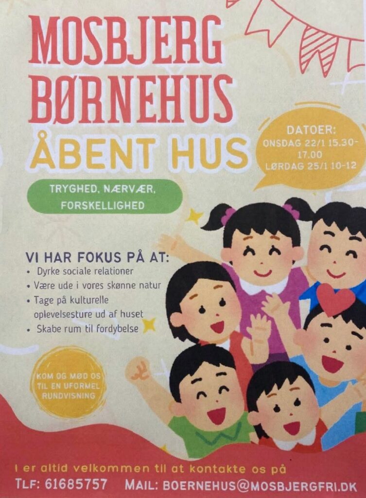 Mosbjerg Børnehus åbner dørene for kommende og nuværende forældre til to arrangementer med åbent hus i slutningen af januar. Børnehuset, der er en integreret del af Mosbjerg Friskole, lægger vægt på at skabe et trygt og stimulerende miljø for børn i alderen 0-6 år.