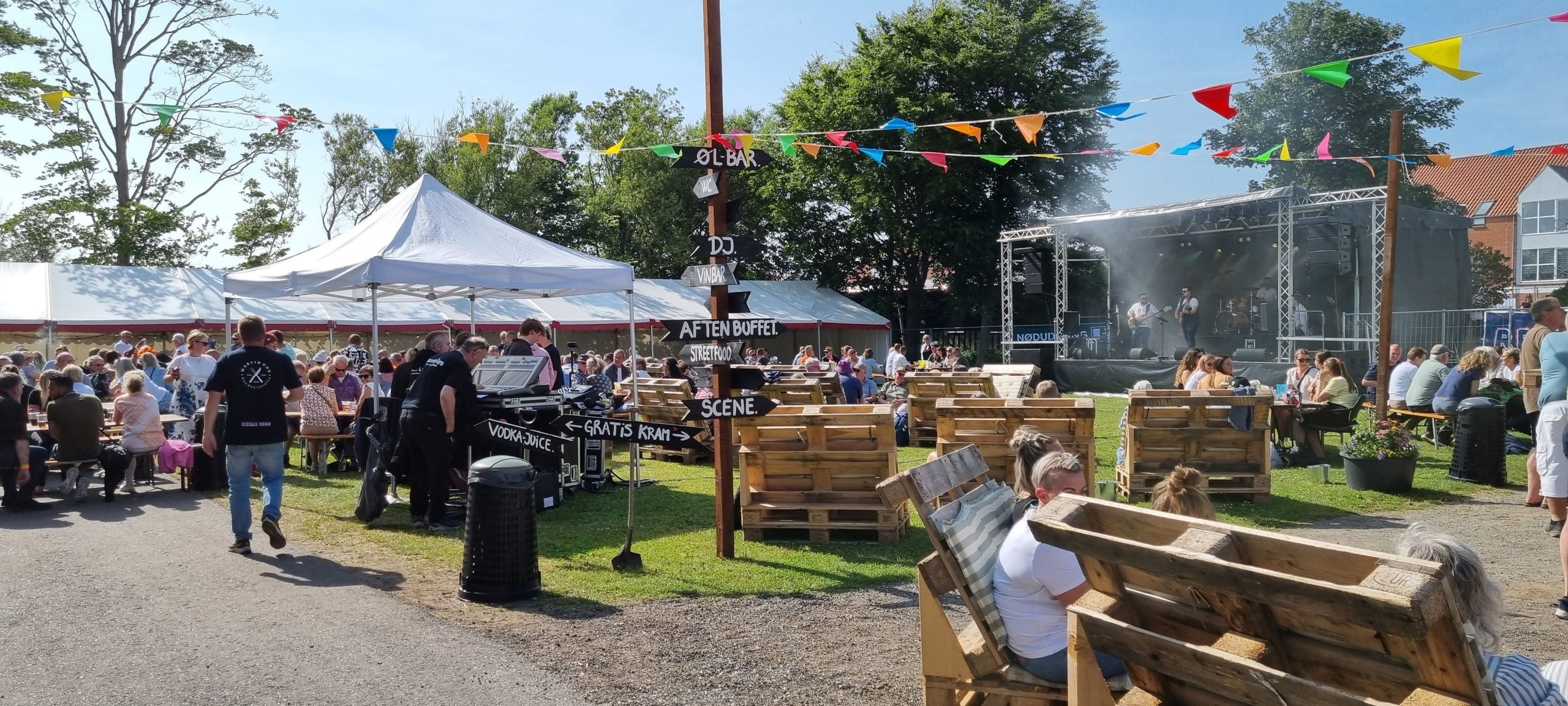 Allerede fra middag blev det tydeligt, at vejret ville spille med. Solen bagte ned over pladsen, og det varede ikke længe, før alle borde og bænke i det store telt blev flyttet ud i haven, så gæsterne kunne nyde både musikken og solens varme. Stemningen var rolig og nærværende. Rundt omkring sad folk og lyttede, snakkede og nød at være sammen – og som dagen skred frem og drikkevarerne fik lidt mere fat, blev der længere frem på aftenen også danset og sunget foran scenen.