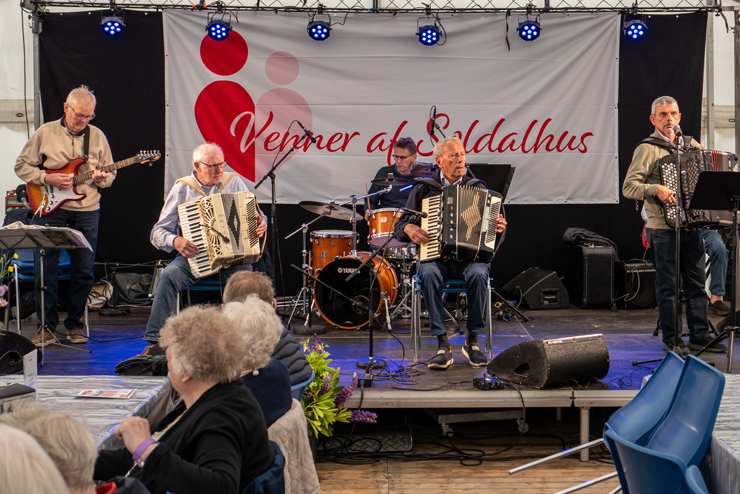 Efter de officielle taler overtog musikken scenen. Sindal Harmonikaklub lagde ud med dansevenlige toner for det modne publikum, efterfulgt af det sprudlende “Ibsens Kapel” fra Sæby, der leverede et festfyrværkeri af gamle slagere, pop, tyrolermusik og sømandssange.