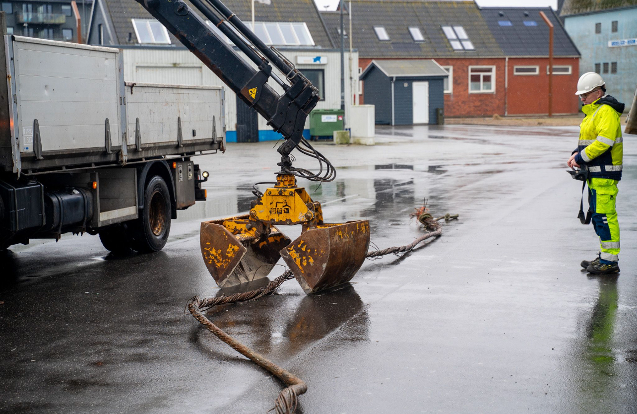 Det så man et eksempel på i sidste måned, da en af Hirtshals Havns dygtige kollegaer fra Teknisk Service var ude for at samle et cirka 8 meter langt søkabel op fra kajen.