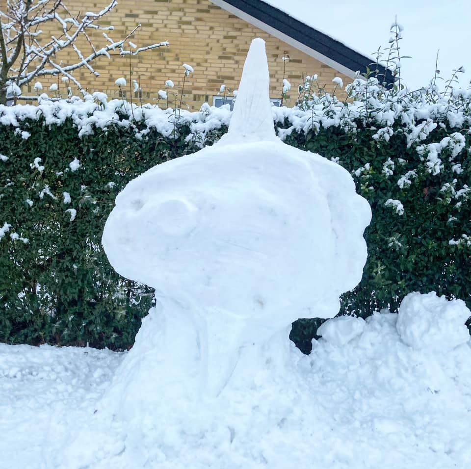 Faktisk savner hun sin arbejdsplads så meget, at hun har kastet sig ud i at skabe en klumpfisk og en sæl som sneskulpturer hjemme i haven.