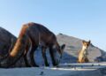 Vi har tidligere her på netavisen omtalt, at først en og senere to nye ræve åbenlyst har fundet sig godt til rette for enden af Vestmolevej på Hirtshals Havn. Rævene har her tilpasset sig havnens menneskeskabte landskab og færdes ubesværet på molens store sten, hvor der er tilstrækkeligt med føde og ingen jægere. Deraf det lokale kælenavn molerævene.