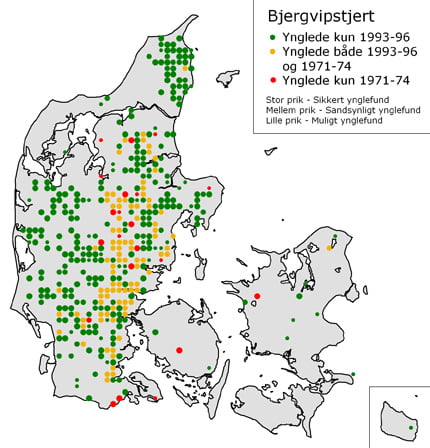 Som det ses af kortet ovenfor har bjergvipstjerten ynglet i området omkring netop Uggerby Å ved Tversted og Bindslev, hvor den altså forleden er blevet foreviget af Frank Abildgaard Sørensen.