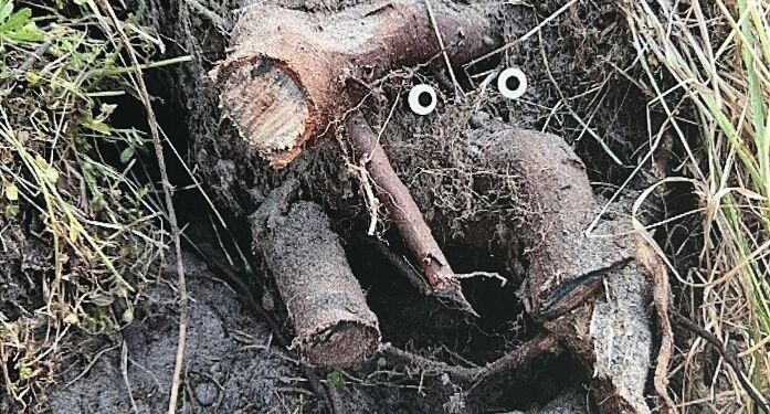 – Jeg cyklede i plantagen og passerede en lille familie på gåben, far, mor og to børn. Et stykke henne stoppede jeg for at fotografere en træstamme. Da familien indhentede mig, forklarede jeg, at jeg syntes den lignede en skovkrokodille.