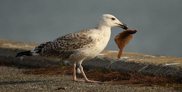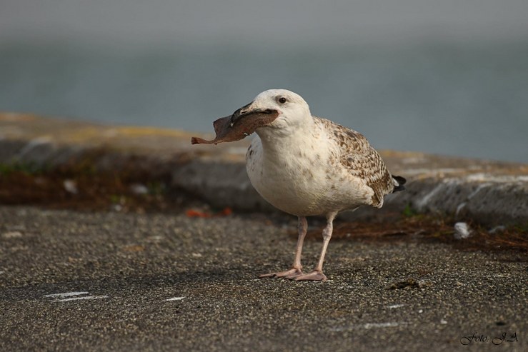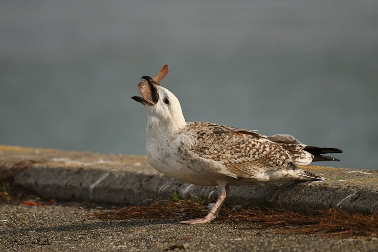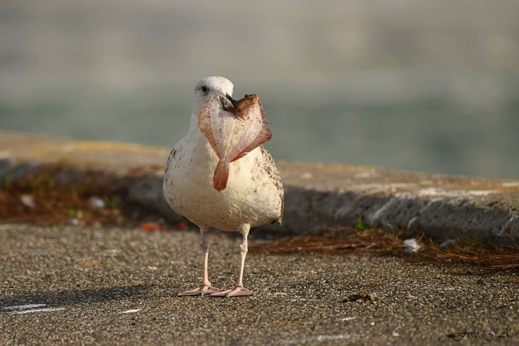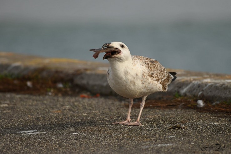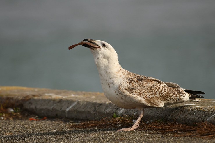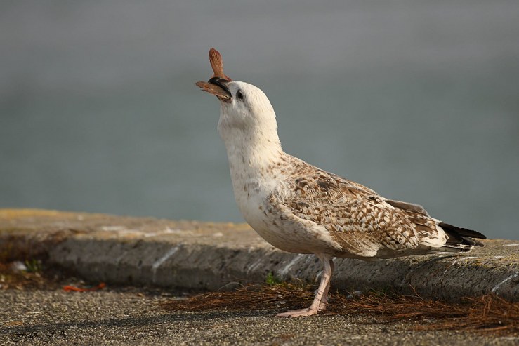 Fascinerende syn er det under alle omstændigheder med så stor en mundfuld til en sulten måge på havnen i Hirtshals.