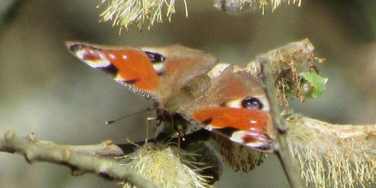 Førstnævnte sted profiterede Dagpåfugleøjer og Grønåret Kålsommerfugl af Pil. Der er simpelthen ikke så mange andre fødekilder derude nu.