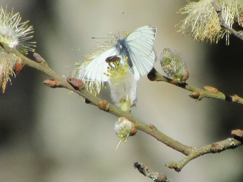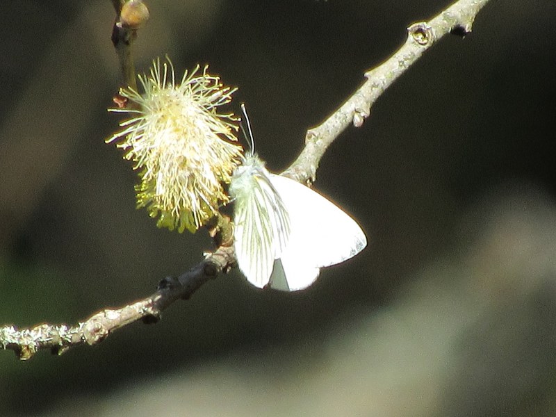 Førstnævnte sted profiterede Dagpåfugleøjer og Grønåret Kålsommerfugl af Pil. Der er simpelthen ikke så mange andre fødekilder derude nu.