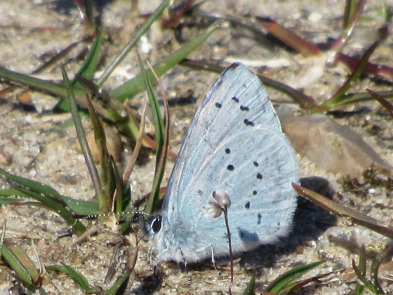 En Skovblåfugl hentede energi fra sandet, noterer Niels Weber.