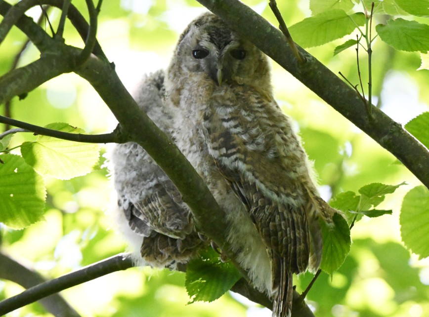 I sommerens løb har ugleparrets unger så fået mod på livet og tog på opdagelse i træerne ved kirken. Se lokale Poul Bastholm Nørgaards fine fotos af ungerne og én af forældrene herover.