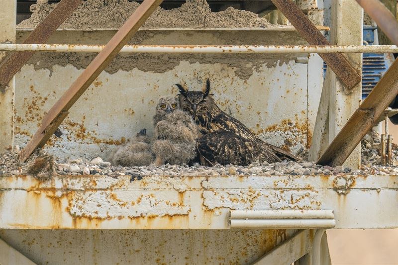 Med et imponerende vingefang på op til 180 centimeter, en højde på omkring 70 centimeter og en vægt på 2-4 kilo, er den sjældne Stor Hornugle Europas største ugle. På trods af dens størrelse og sjældenhed er NCC i fuld gang med at sikre dens overlevelse ved at opsætte specielt designede kæmpe redekasser i sine grusgrave.