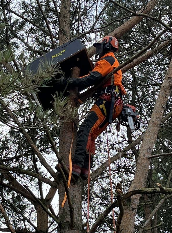 Der forventes ikke ynglende Stor Hornugle i kasserne i år, men nu er de klar, så fuglene i området kan vænne sig til dem og måske tage dem i brug til næste års ynglesæson.