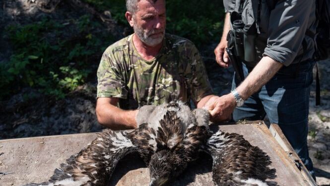 Det var Kim Skelmose fra Projekt Ørn/DOF, som var ude at ringmærke. Det er en stor hun ca. 40 dage gammel, som bliver ringmærket på billederne.
