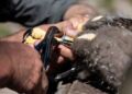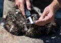 Det var Kim Skelmose fra Projekt Ørn/DOF, som var ude at ringmærke. Det er en stor hun ca. 40 dage gammel, som bliver ringmærket på billederne.