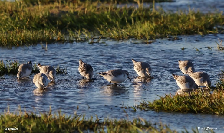 Calidris alba eller på dansk hvid ryle, bedre kendt som sandløber, er som allerede nævnt en charmerende lille rygle, som ses i mindre flokke i vandkanten.