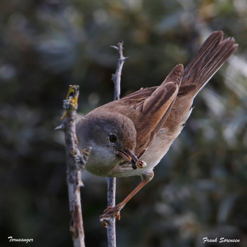 Tornsangeren er en nattrækkende langdistancetrækfugl, som overvintrer i tropisk Afrika. Der går et stort træk af skandinaviske fugle gennem landet, især i maj og august/september. Dens føde udgøres, som det anes på billederne, af insekter, edderkopper og bær.