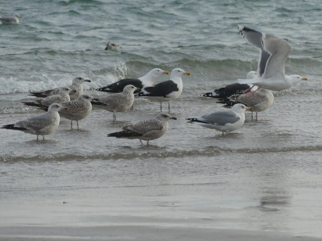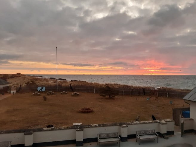 I løbet af eftermiddagen blæste det op og vi kunne se trækkende suler fra en lun stue. En sølvmåge prøvede at få hul på et dødt havpattedyr i bølgerne (sæl eller marsvin) – det finder vi nok ud af en af de nærmeste dage, når dyret skyller op. Til aften andendags gullaschsuppe.