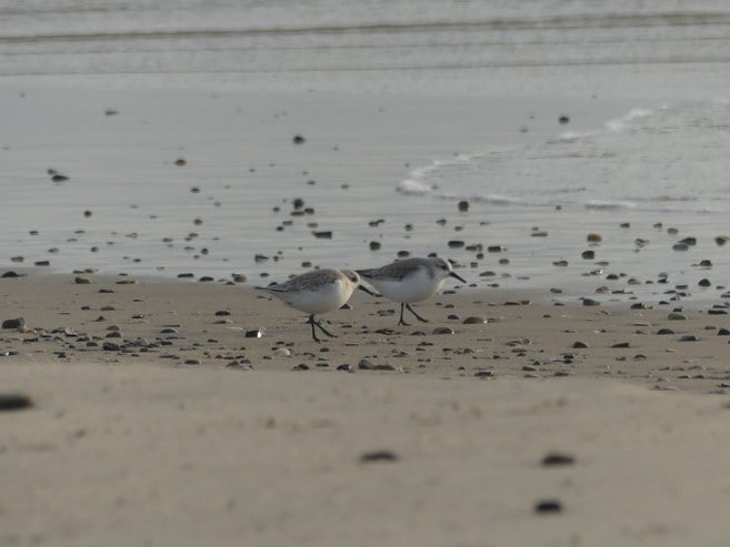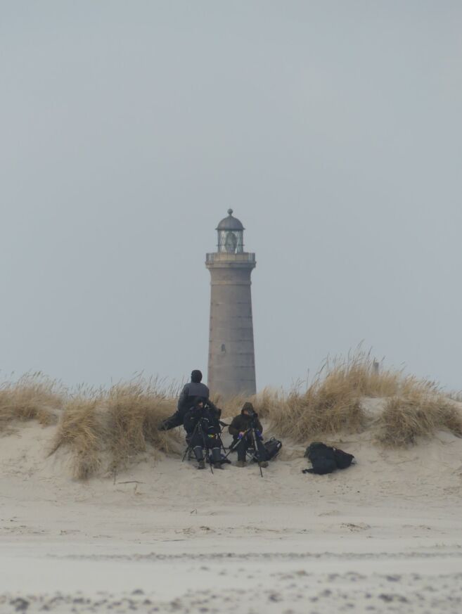 Vejret er omskifteligt i disse dage. Til morgen var vinden frisk og i sydøst, så fuglestationens obsere krøb i læ i den yderste klitrække.