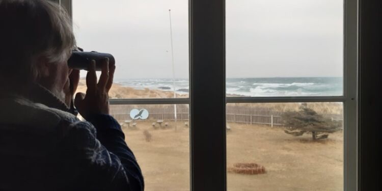 Så der var tid til indendørs sysler – vi havde mulighed for at se trækfugle-udstillingen, der er ved at blive klargjort til genåbningen. Jonas og Michaela brugte en del af dagen til at reparere net oppe på loftet. Dorte og jeg fik også tid til at komme ud og mærke vinden – og se mågerne, der prøvede at finde føde i brændingen.