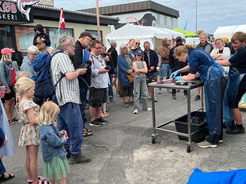 Lørdag formiddag kunne man da også se hende i rollen som lige præcis biolog dissekere et marsvin på kajkanten ved Nordsøen Oceanariums stand på Sydvestkajen. Det trak hurtigt rigtig mange nysgerrige og videbegærlige små og store tilskuere til standen, da hun gik i gang, mens hun fortalte om marsvinet.