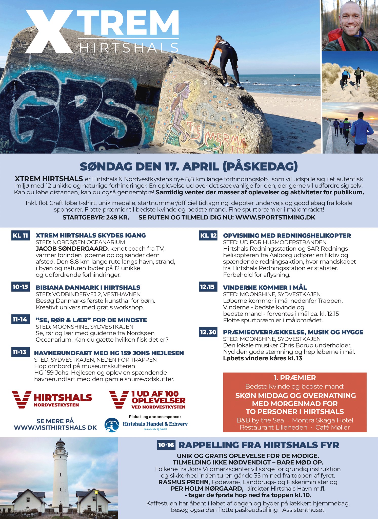 Det store program tæller blandt andet et unikt ekstremløb, rappelling fra Hirtshals Fyr, opvisning med SAR redningshelikopter fra Aalborg og redningsbådene fra Hirtshals Redningsstation og gratis havnerundfart med museumskutteren HG 159 ”Johs. Hejlesen”.