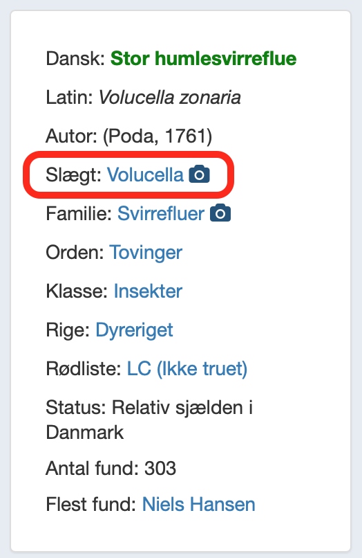 På arternes faktaark er der nu et link til et galleri med alle arter i SLÆGTEN. Når du læser om arten, kan du altså nu både se alle arter i slægten og i familien.